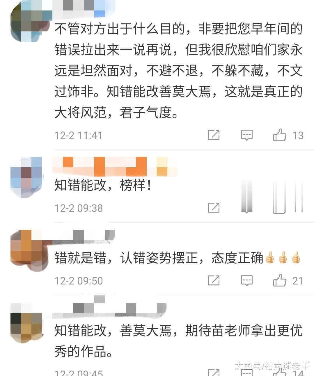 这则道歉下的评论更有意思,清一色的说苗阜知错就改,是个敢于担当的演员。更可笑的是,有人义正言辞地说,苗阜的那些调侃是早些年的事,现在翻出来有意思吗等等之类的话。